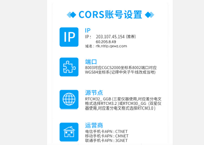 我們手簿在連接cors賬號的時候,除了要輸入購買的用戶名和密碼信息,還需要填寫相應IP地址以及端口和源節點等參數信息,如果IP地址輸入錯誤,可能導致我們連接賬號成功后出現單點解的情況。所以我們用戶在進行參數設置的時候最好按照官方指定的IP和端口信息進行設置。那么cors賬號的官方IP地址和端口是多少呢?下面小編給大家介紹以下參數設置的信息:...
